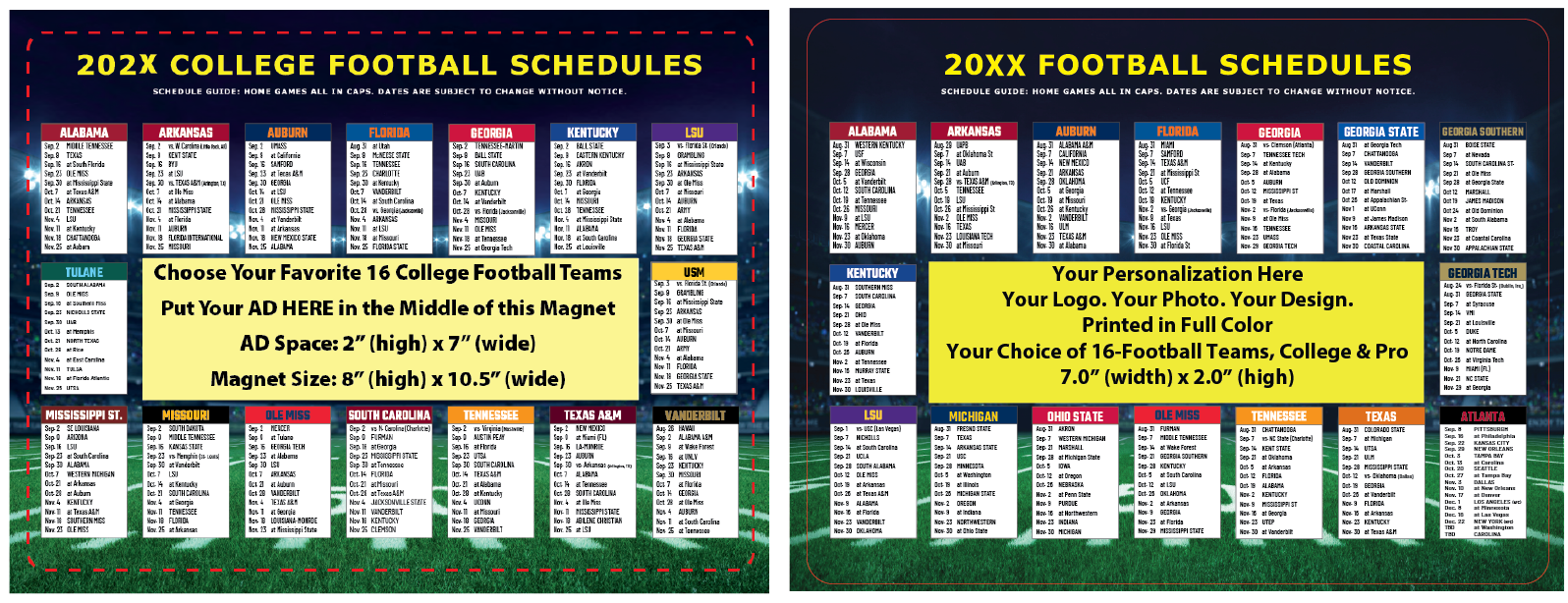 Magnet Sizes: Varies, depending on number of teams & how large you want your advertising message.